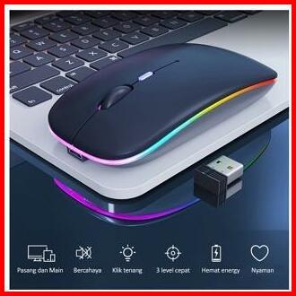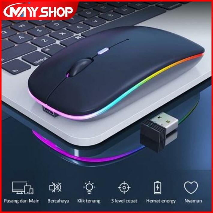 Mayy Mouse Wireless Gaming Bluetooth Silent Click Rechargeable Laptop Pc Rgb Slim 2.4ghz 1600dpi Led Backlit Isi Ulang-m