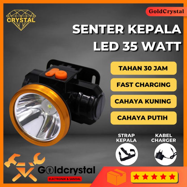 Lampu Senter Kepala LED 35 Watt Headlamp Battery Lithium Lampu Gunung Camping Hiking Senter Camping