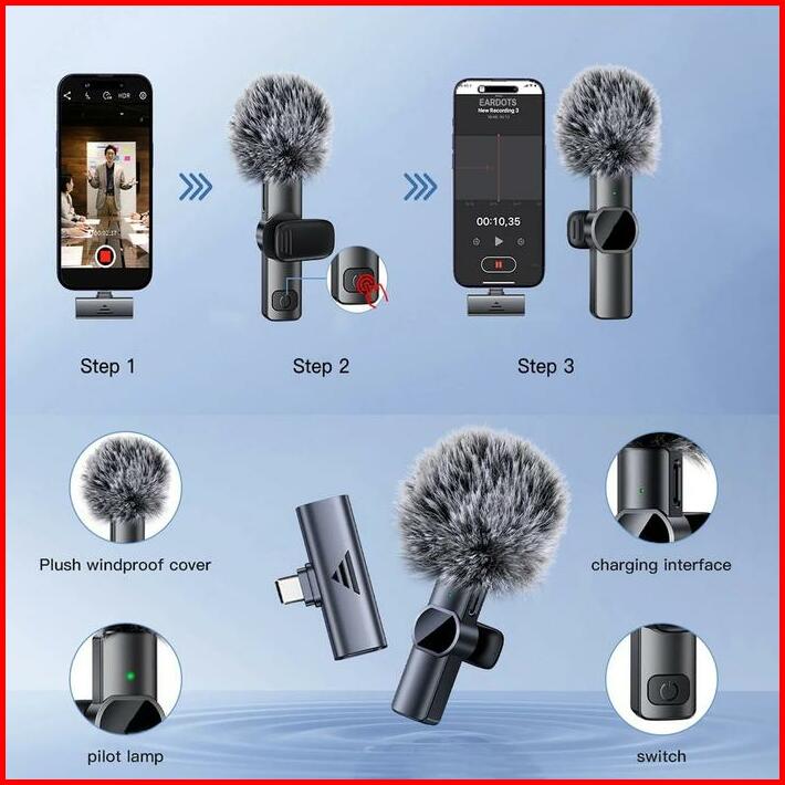 Mayy K3 Pro 2 Mic Wireless Clip On Microphone Mikrofon Lavalier Hp Plug Play