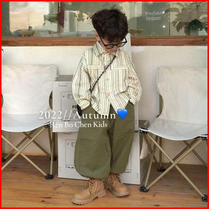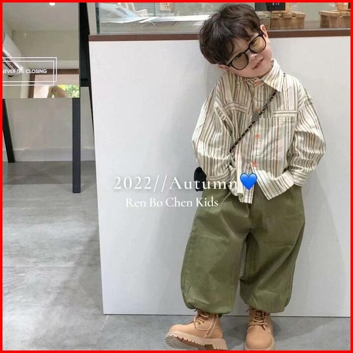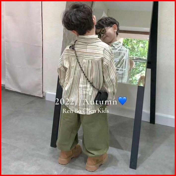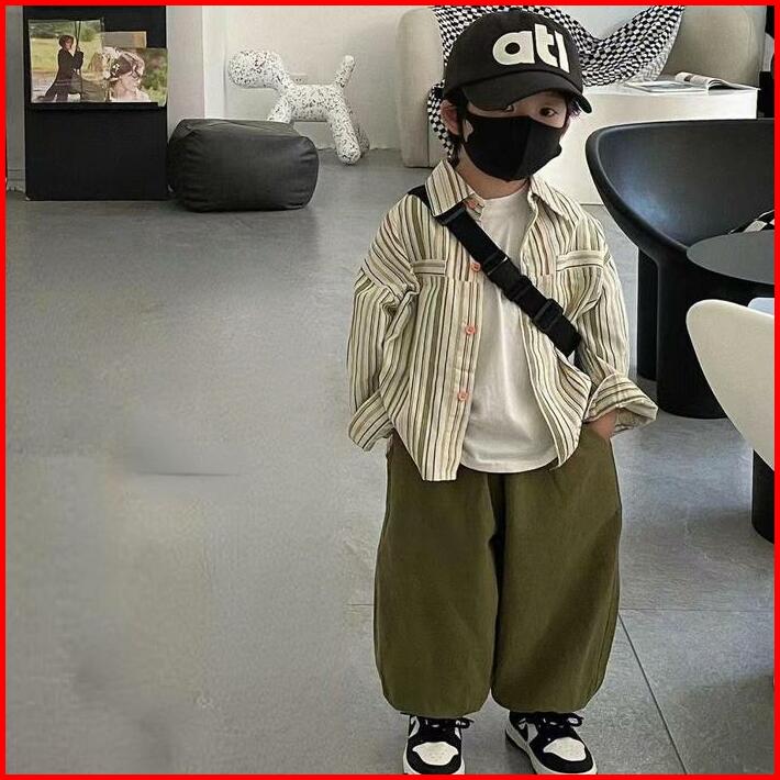 Korean Style Anak Laki-laki Garis-garis Kemeja Celana Panjang Wide Leg Pants Set Anak Fahion Baju Laki-laki