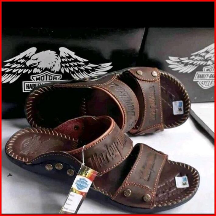 Sandal Pria Kulit Sapi Asli Model Slop Terlaris Karet Tahan Lama Dan Awet Selop Sepatu Pantofel