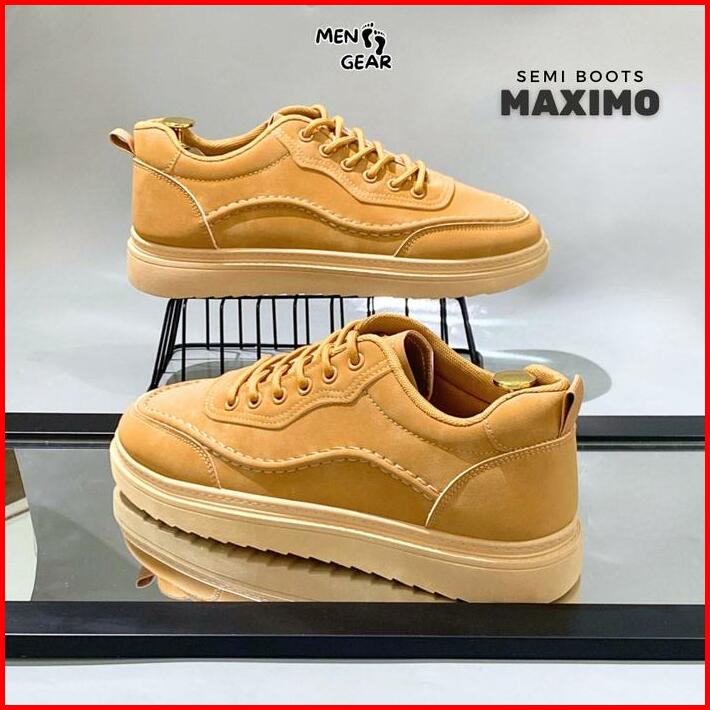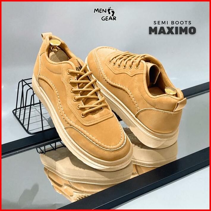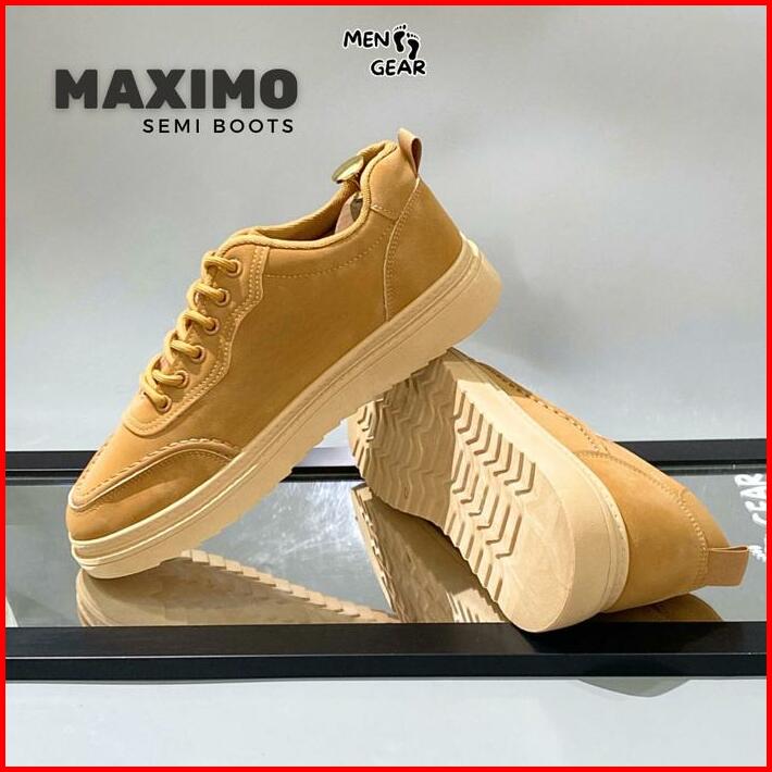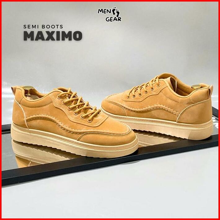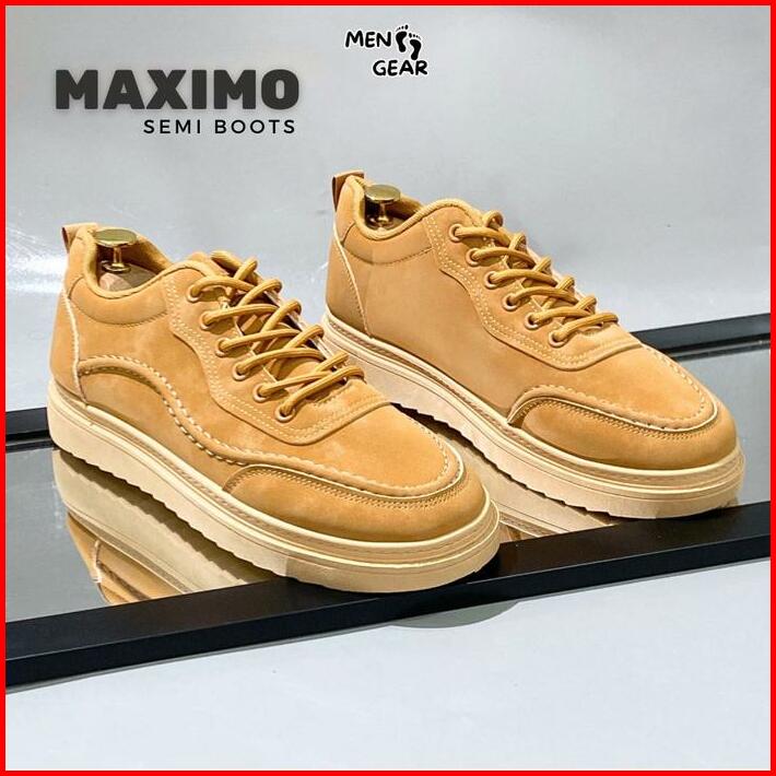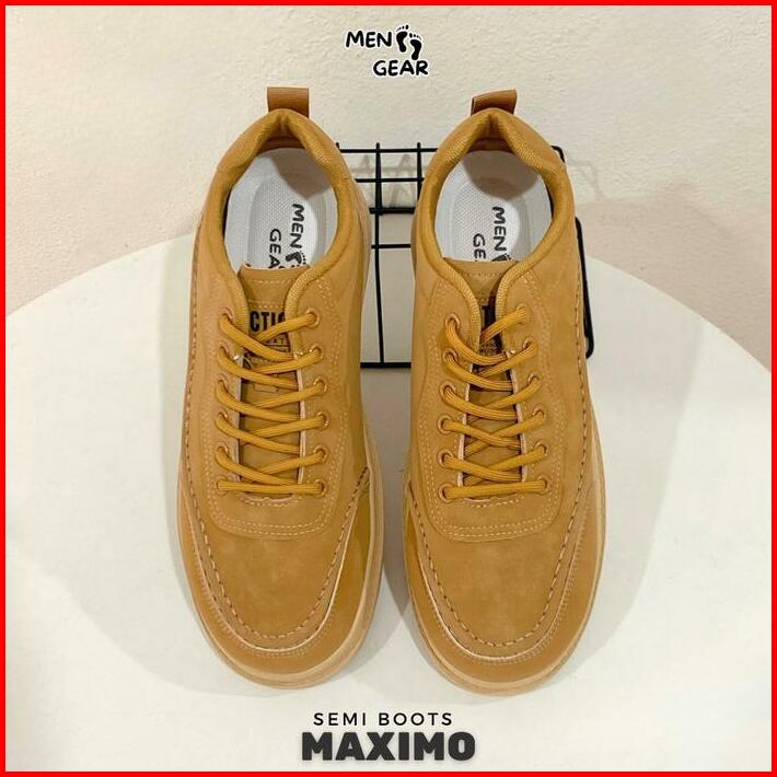 Menfootgear Maximo Sepatu Semi Boots Pria Kerja Kulit Sintetis Kombinasi Suede Choco
