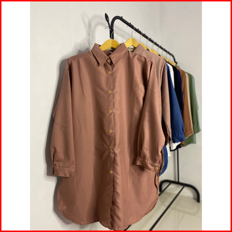 Zn1 - Baju Long Dress Kemeja Tunik Wanita Hitam Putih Polos Jumbo Casual Kasual Shakila Shirt