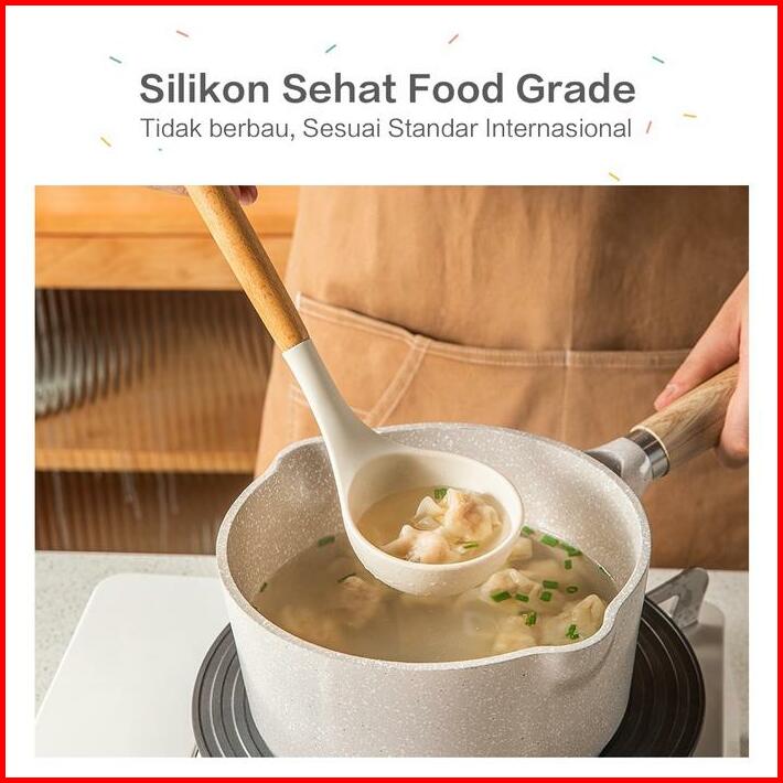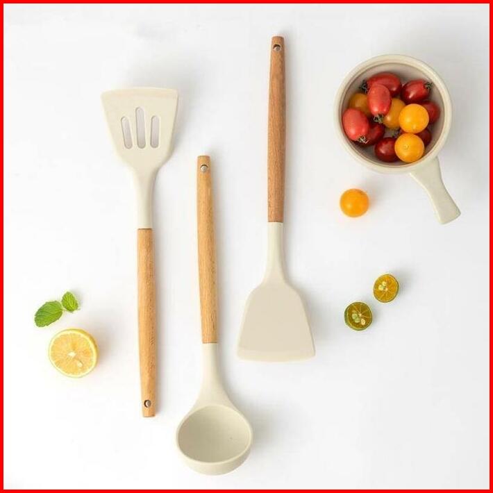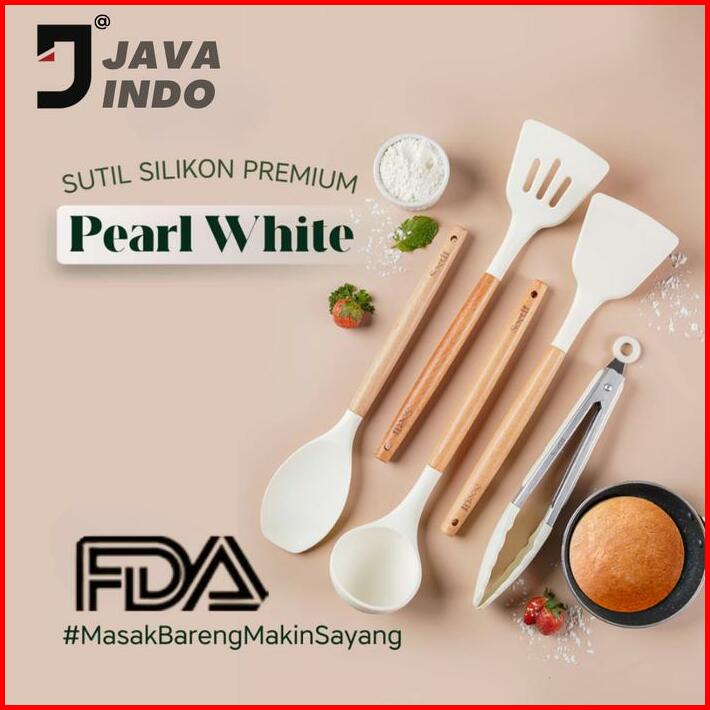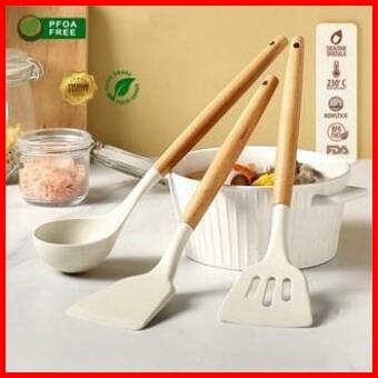 Java 6 In 1 Silicon Spatula Set 3pcs Sutil Utensil Tahan Panas Pegangan Kayu