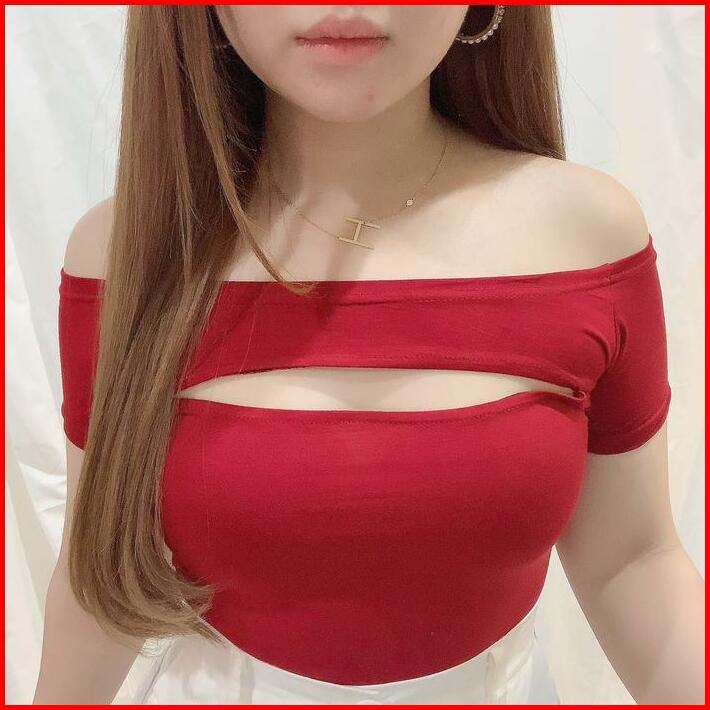 Off Shoulder Cut Out Front Top Baju Sabrina Atasan Wanita Korean Fashion Tga Fashion Grosir