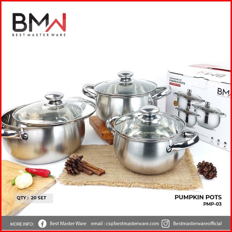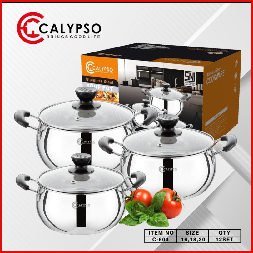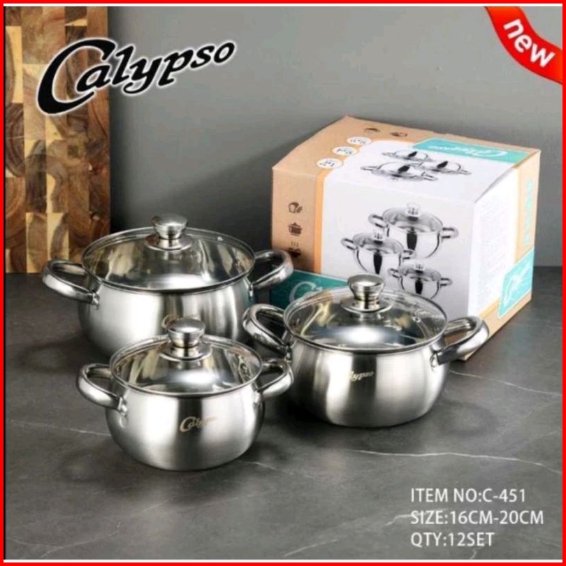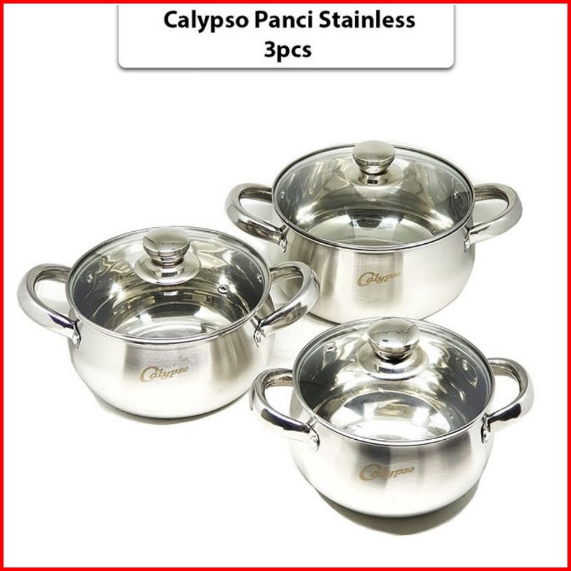 Calypso Panci Set 3 Pcs 16cm 18cm 20cm Panci Tutup Kaca Stainless Steel
