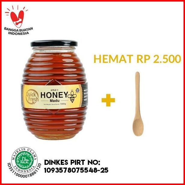 Free Sendok Kayu 17cm Quick Fresh Honey Madu 1kg Jar
