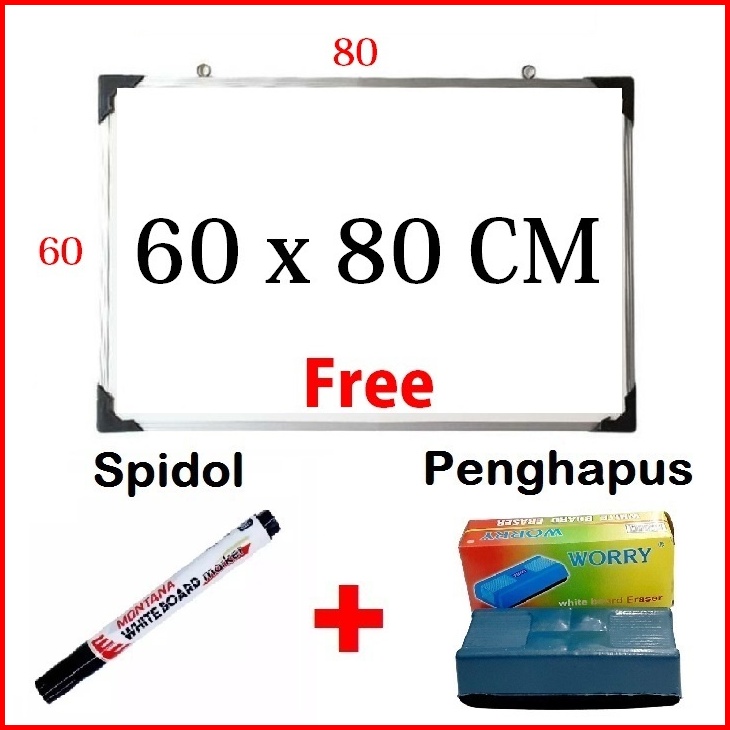 Papan Tulis White Board 60 Cm X 80 Cm Free Spidol Dan Penghapus