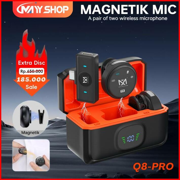 Q8 Mayy Magnetic Mic Wireless Clip On Microphone Mikrofon Lavalier Hp Plug Play
