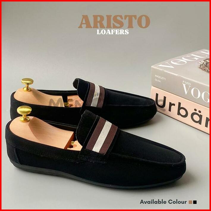 Menfootgear Aristo Sepatu Loafers Pria Sepatu Flat Shoes Slip On Karet Empuk Hitam Choco