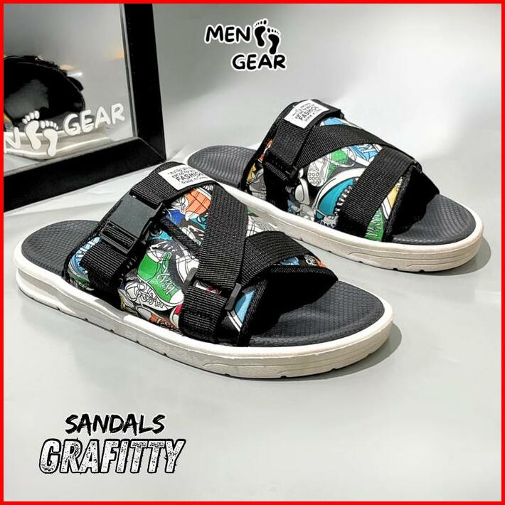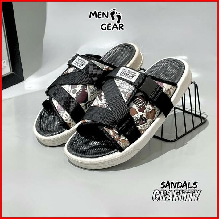 Menfootgear Grafitty Sandal Pria Sepatu Sendal Cowok Karet Empuk Gunung Outdoor Hitam Coklat