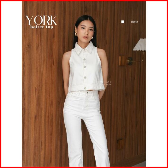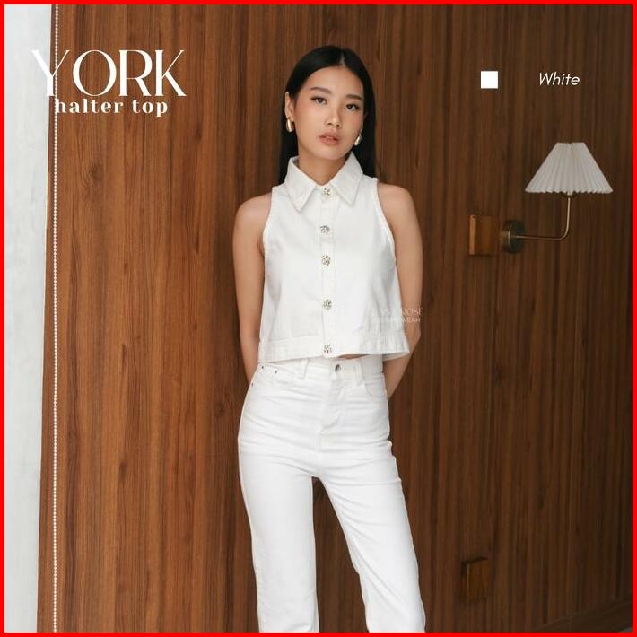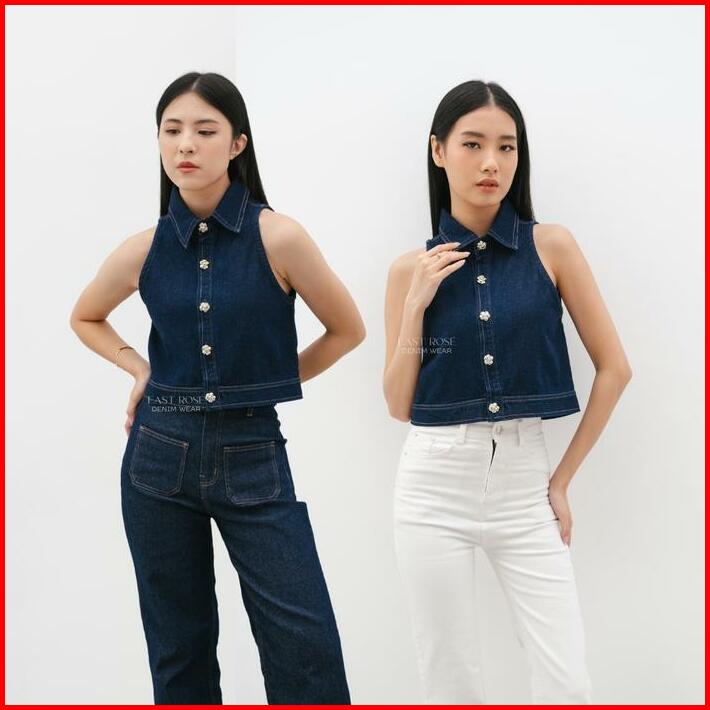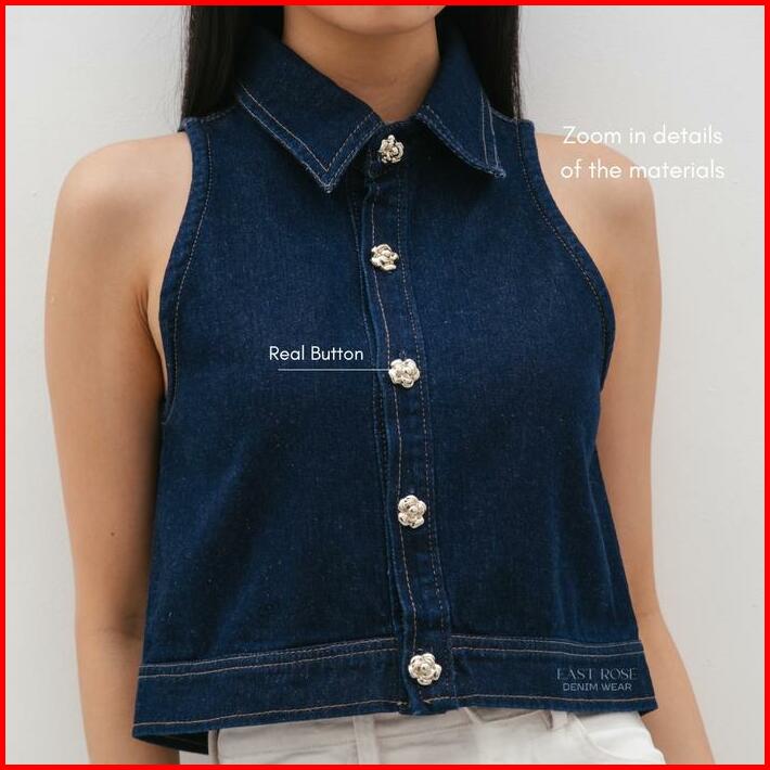 Eastrose York Halter Top Atasan Denim Wanita Kemeja Denim Halter Top Wanita