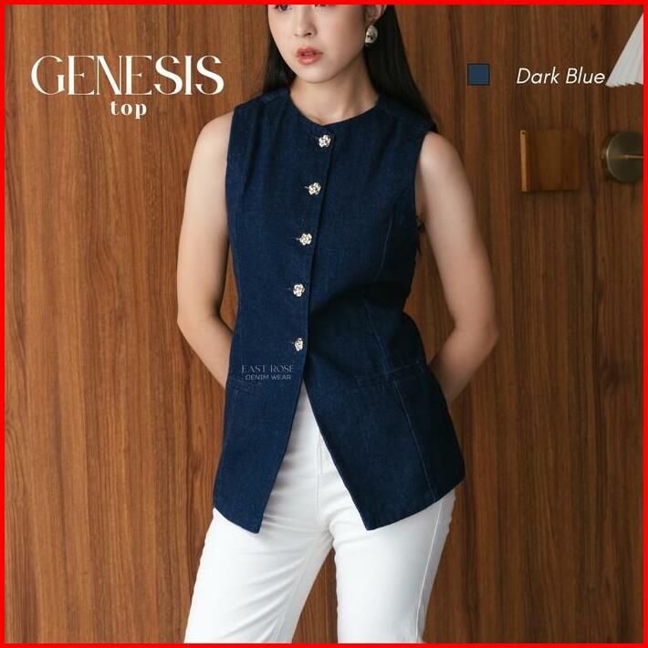 Eastrose Genesis Top Atasan Denim Wanita Blouse Jeans Top Denim Terbaru Kemeja Tanpa Lengan Wanita Top Jeans