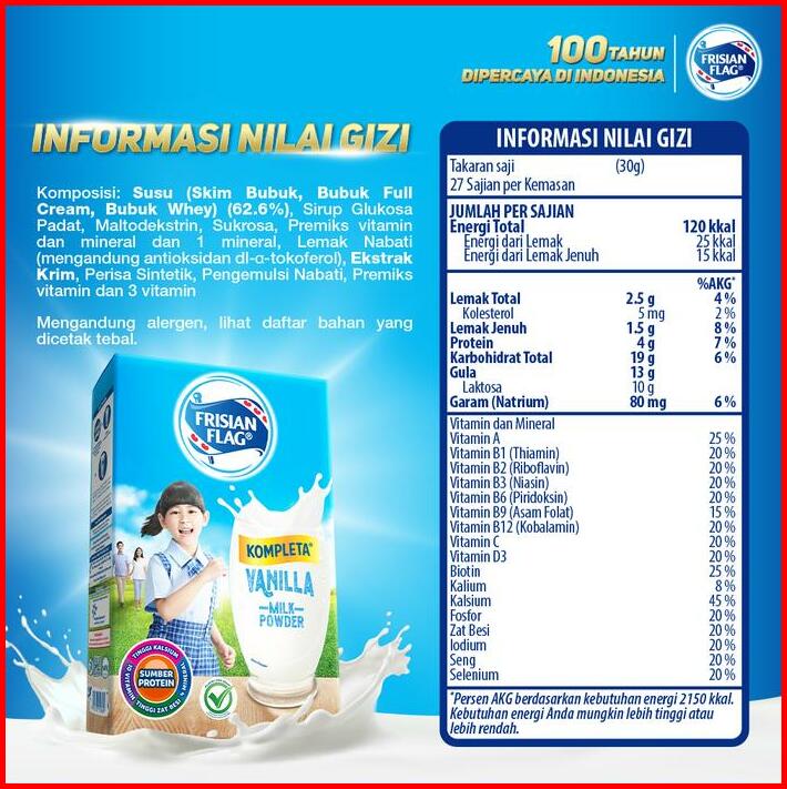 Frisian Flag Kompleta Susu Bubuk Vanilla Sachet 30g 10pcs