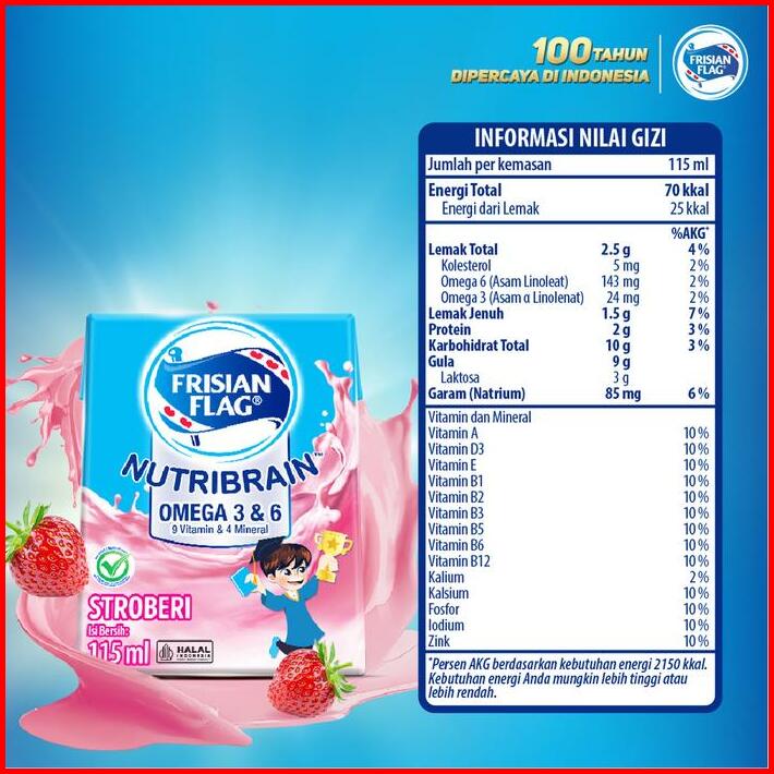 Frisian Flag Omega Susu Uht Strawberry 115ml 36 Pcs