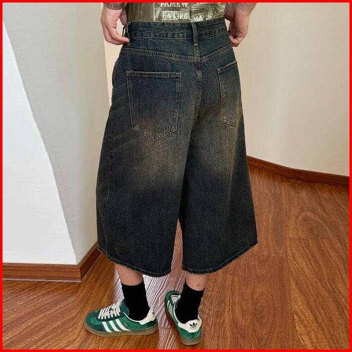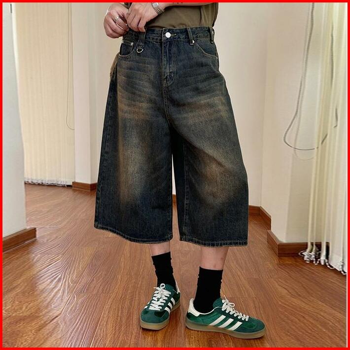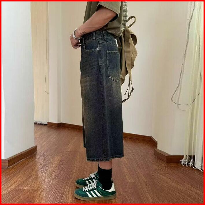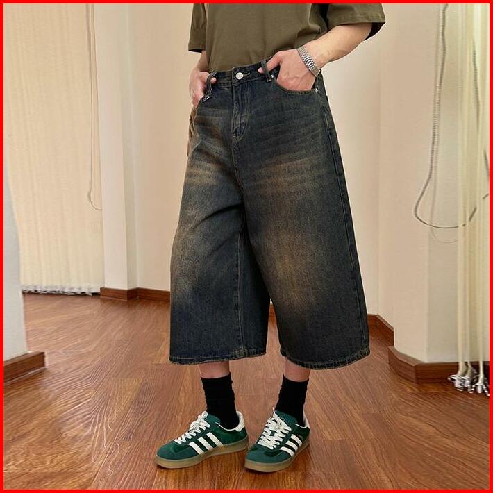 Celana Jeans Panjang 7 8 Pria Korean Style Casual Vintage Baggy Pants Jens Kulot Cowok Jumbo Pendek Denim Gombrong Outfi