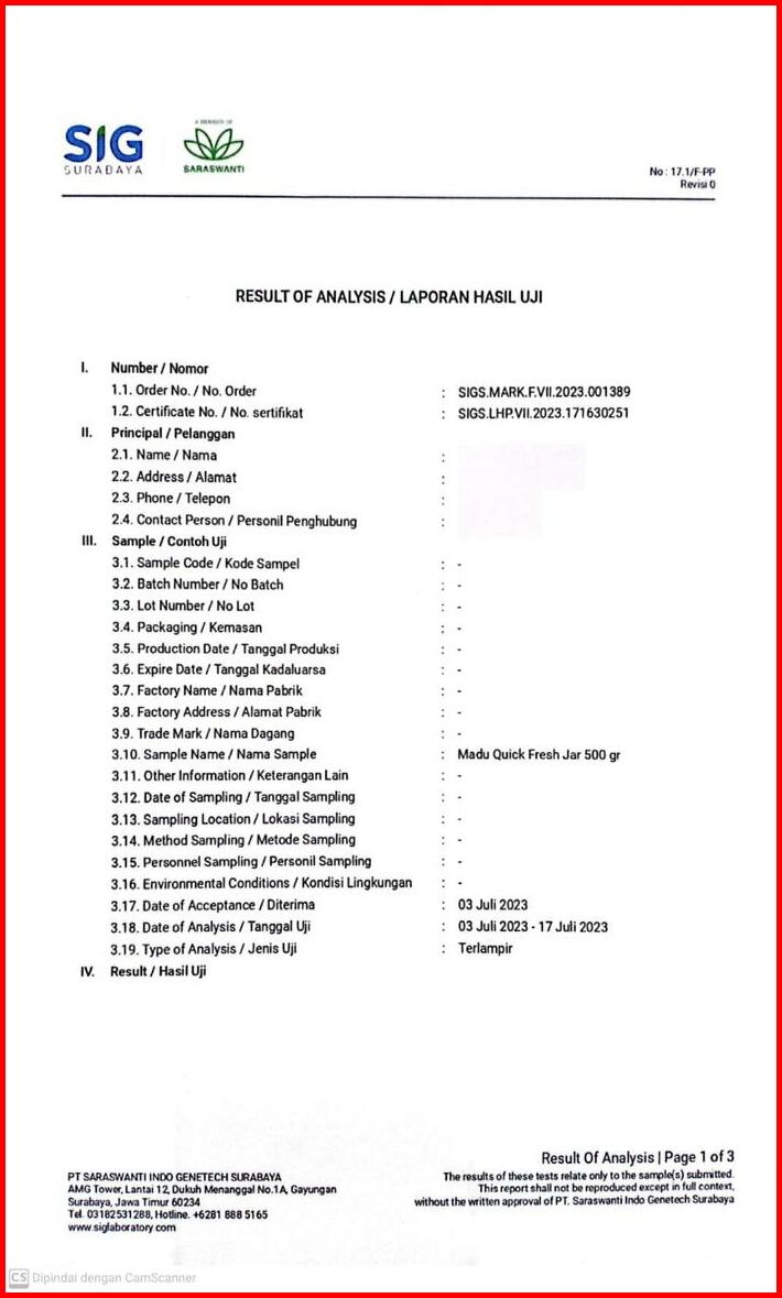 Quick Fresh Honey Madu 500 Gram Jar