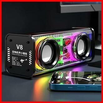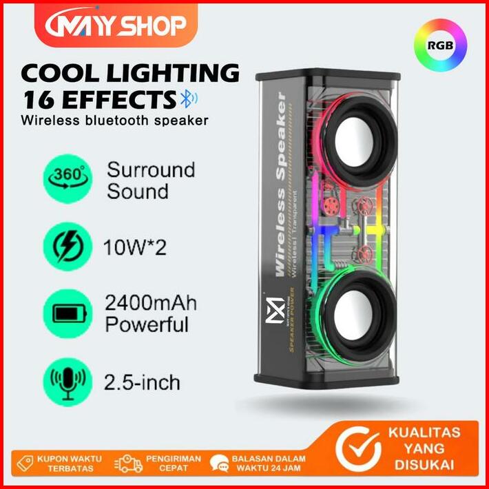 Mayy Mecha Speaker Bluetooth Subwoofer Meriam Baja Kecil Transparan V8 Audio Portabel Nirkabel 13w Tws Wireless