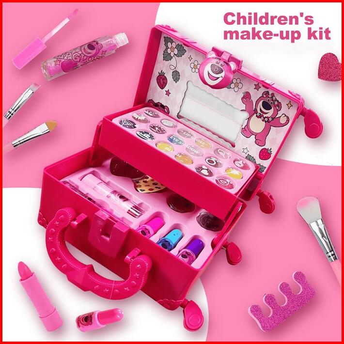 Mayycodbaru 32 Pcs Mainan Kosmetik Kecantikan Anak Kasus Peralatan Tidak Beracun Kotak Make Up Untuk Gadis Ulang Tahun R