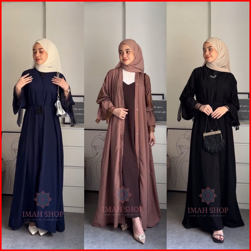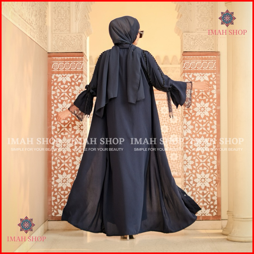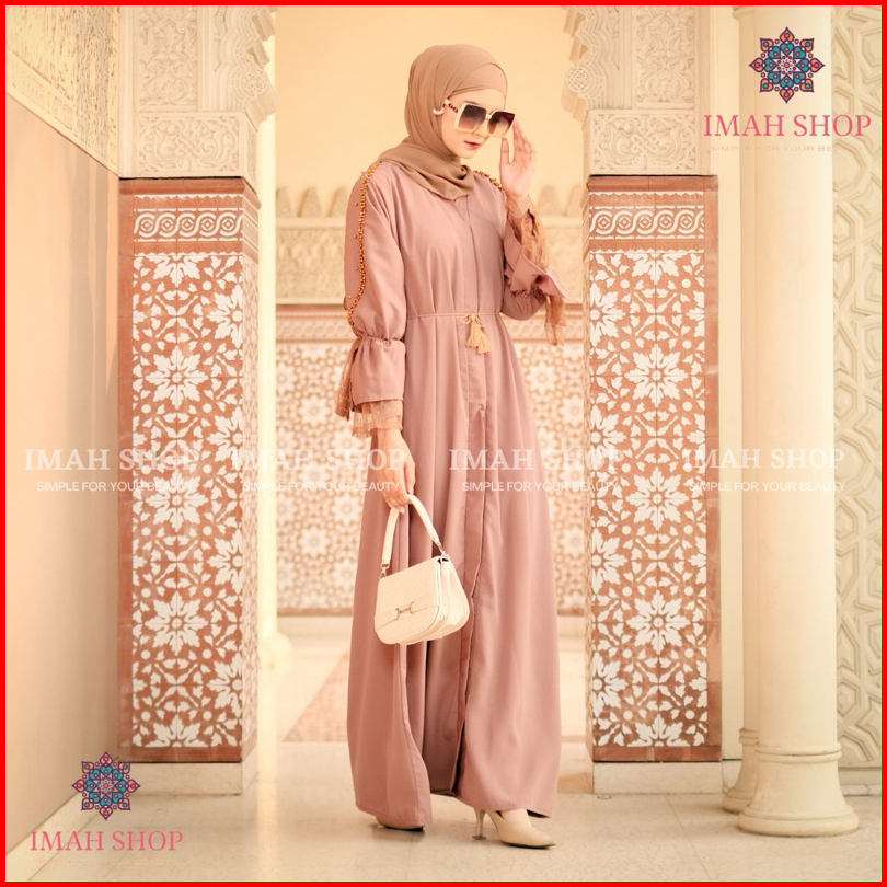 Abaya Hitam Turkey Gamis Syari Muslimah Bahan Jetblack Hitam Kombinasi Tile Polkadot Imah Shop Dress Arab Saudi 969