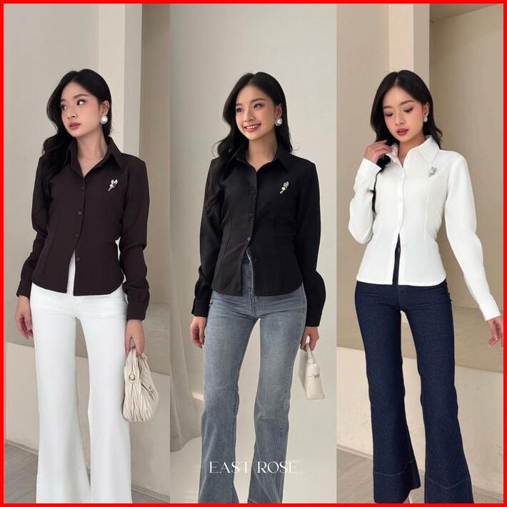 Eastrose Hoji Fitted Shirt Kemeja Wanita Blouse Wanita Blus Lengan Panjang Atasan Lengan Panjang Kemeja Lengan Panjang