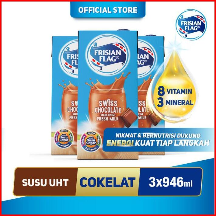 Frisian Flag Purefarm Susu Uht Swiss Chocolate 946ml 3 Pcs