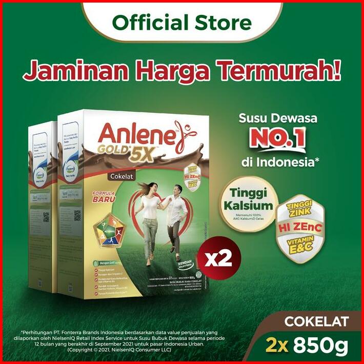 Anlene 5x Susu Bubuk Dewasa Cokelat 2x850g