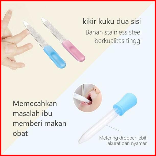 Momwell Baby Care Kit 10in1 Manicure Set Nature Series Potong Kuku Bayi Baby Nail Trimmer Baby Care Biru Gunting Sikat S
