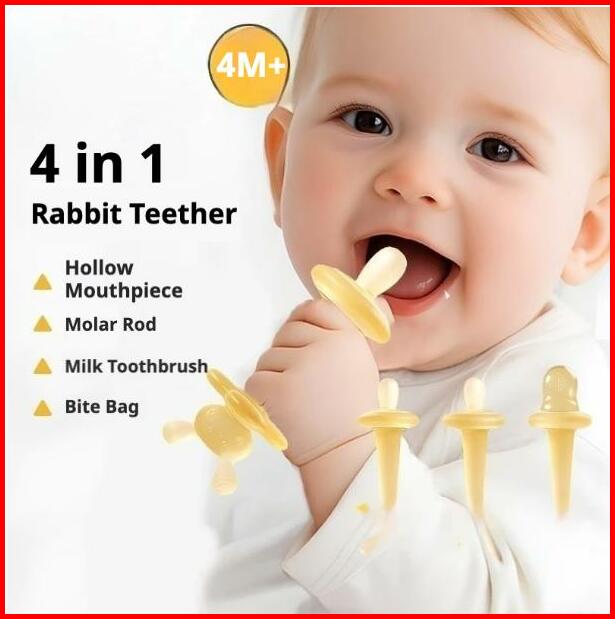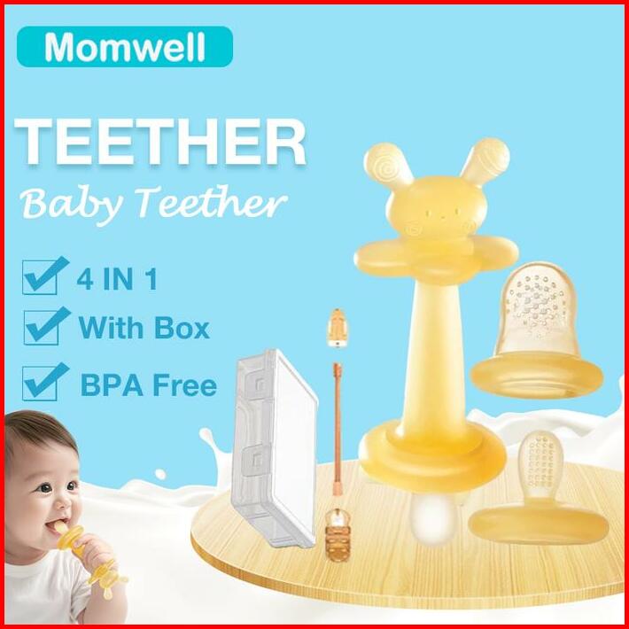 Momwell Yj06 Teether Bayi 4 Pcs Set Bpa Free Silikon Food Grade Mainan Gigitan Gigi Bayi