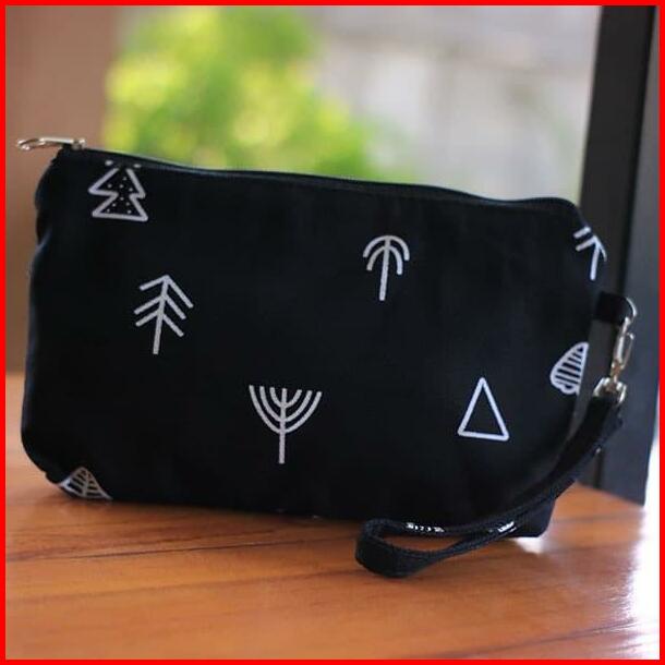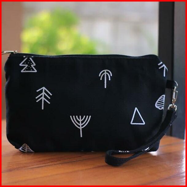 Dompet Pouch Wanita Spnb Kanvas Tree Hitam