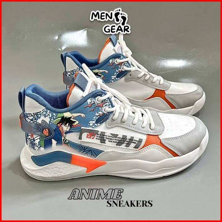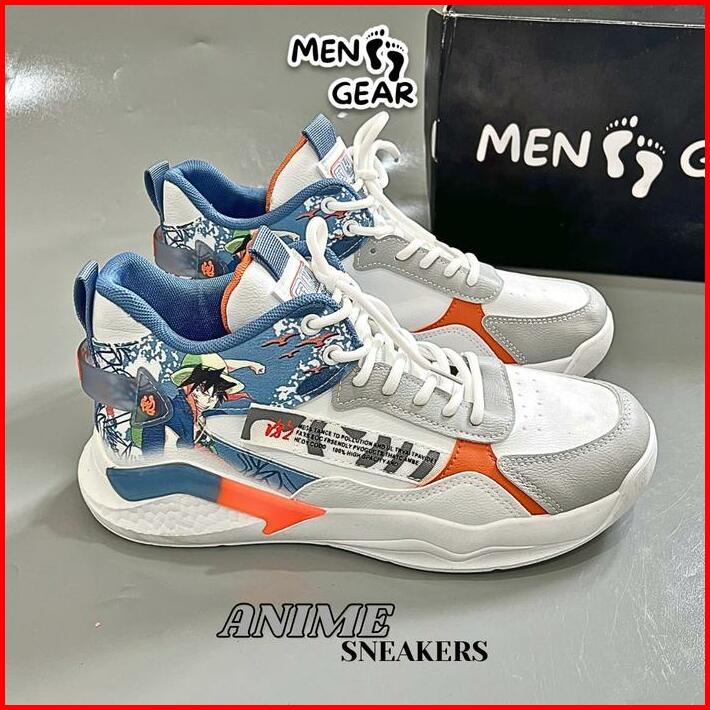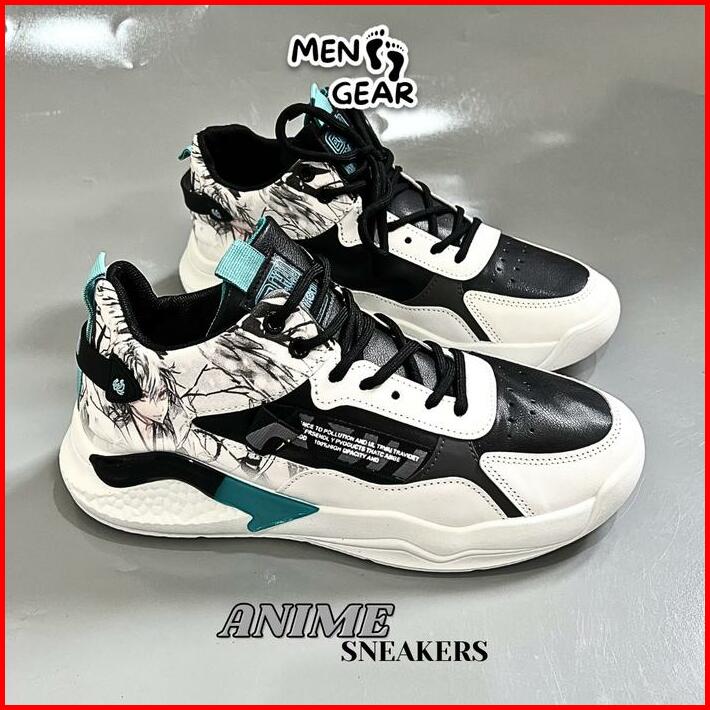 Menfootgear Anime Sepatu Boots Pria Shoes Premium Casual Sneakers Karet Empuk Black Blue