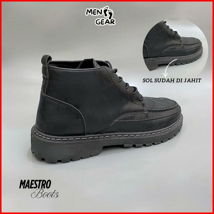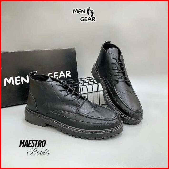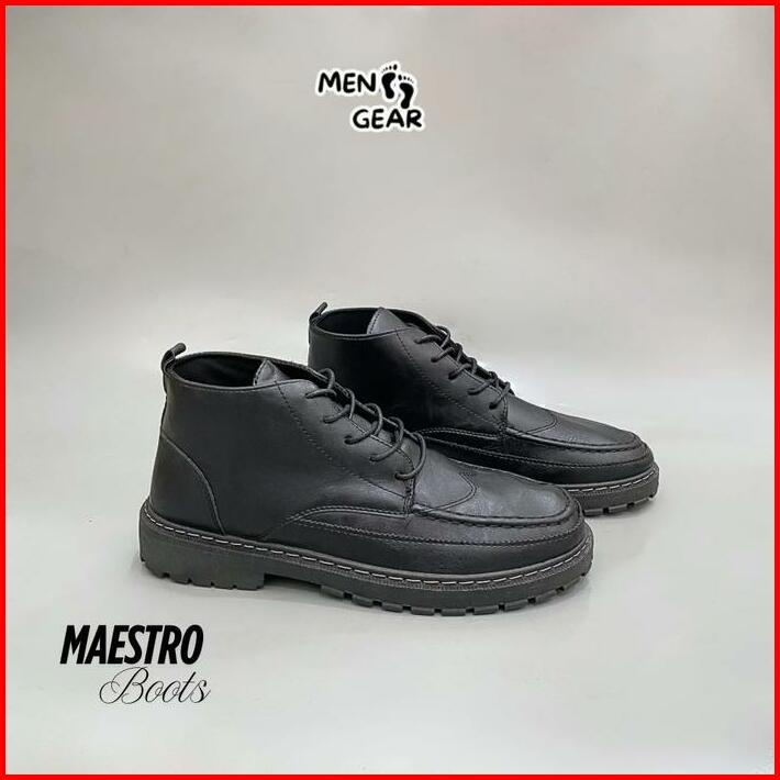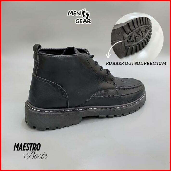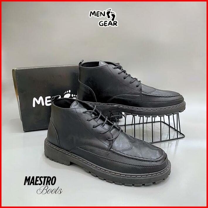 Menfootgear Maestro Sepatu Boots Pria Sepatu High Shoes Karet Empuk Kerja Hitam