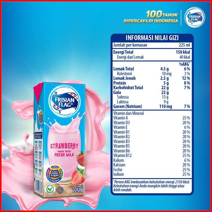 Frisian Flag Purefarm Susu Uht Strawberry 225ml 6 Pcs