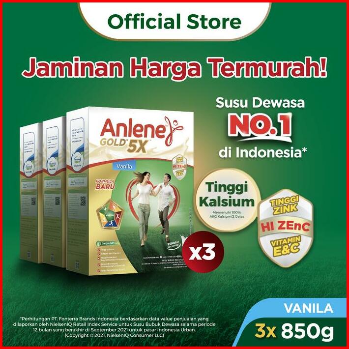 Anlene 5x Susu Bubuk Vanilla 3 X 850g-tulang Sendi Otot
