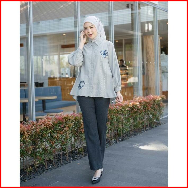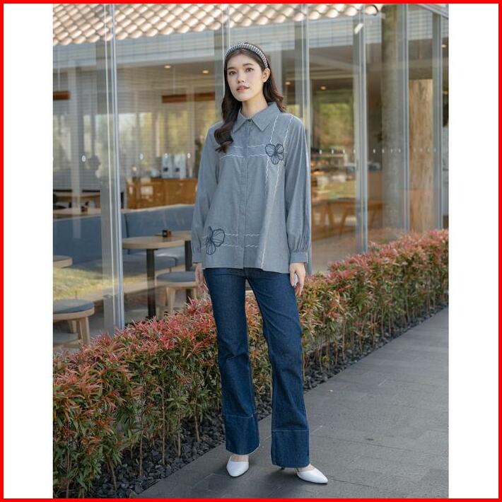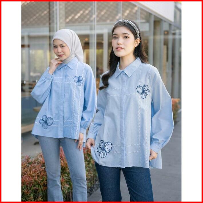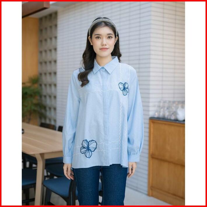 Mayoutfit Devika Shirt Kemeja Katun Basic Wanita Bordir Bunga Embroidery