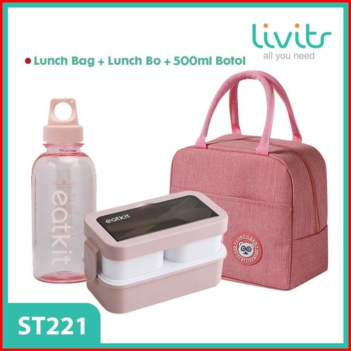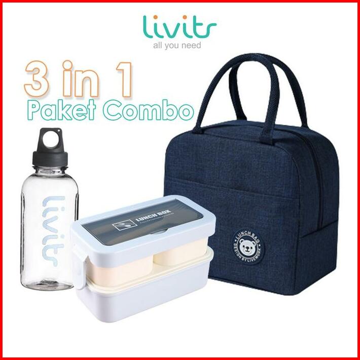 Livits Lunch Box 3 In 1 Set I Paket Lunch Box 2 Susun 1250ml Kotak Bekal Bento Anti Tumpah Dengan Botol Minum 500 Ml Fre