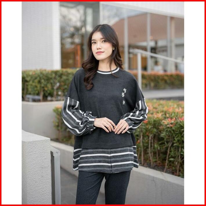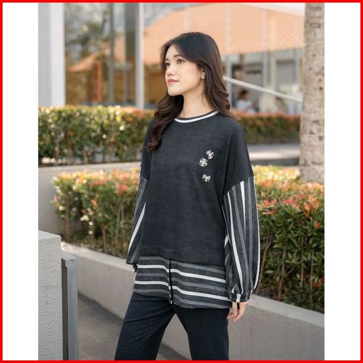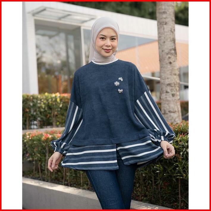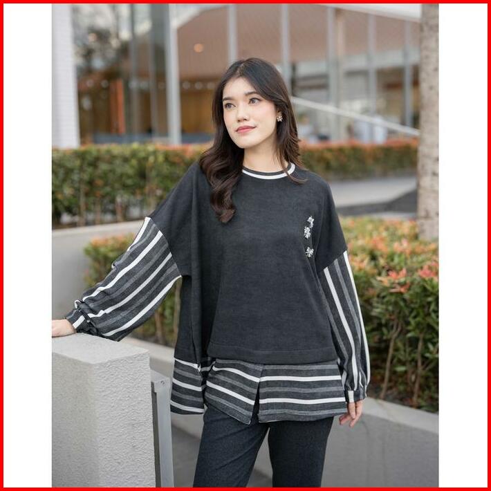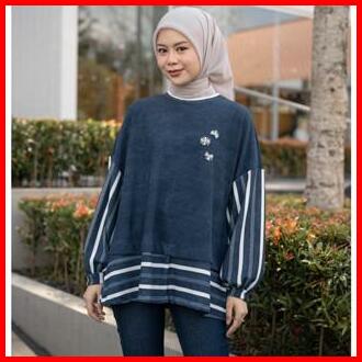 Mayoutfit Ivenne Blouse Kemeja Denim Blouse Knit Wanita Aksen Payet Beads