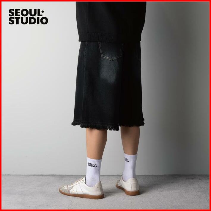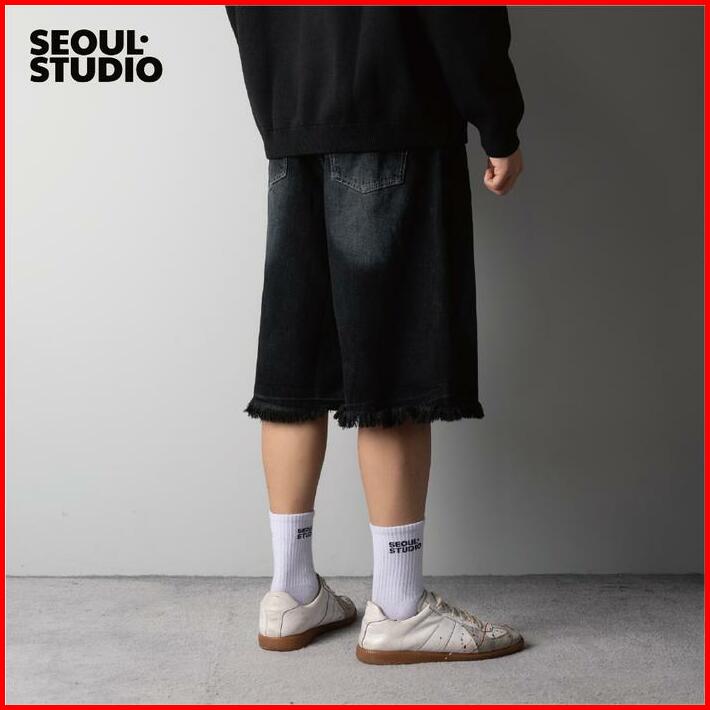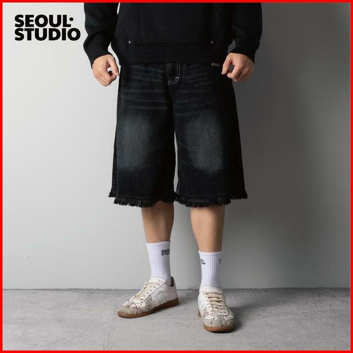 Seoulstudio Bermuda Pants Black Washing Jorts Denim Celana Jeans Short Pendek Baggy Gombrong Pria Cowok Cewek Perempuan