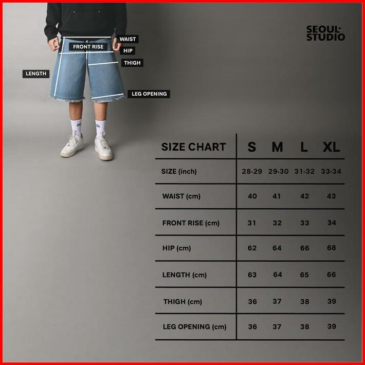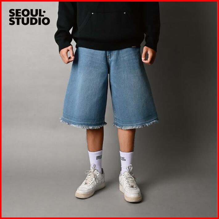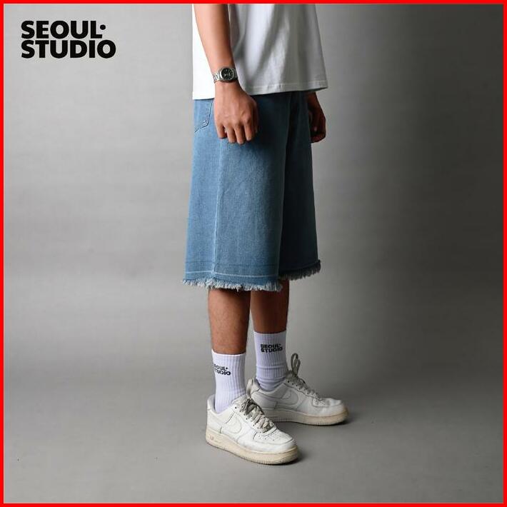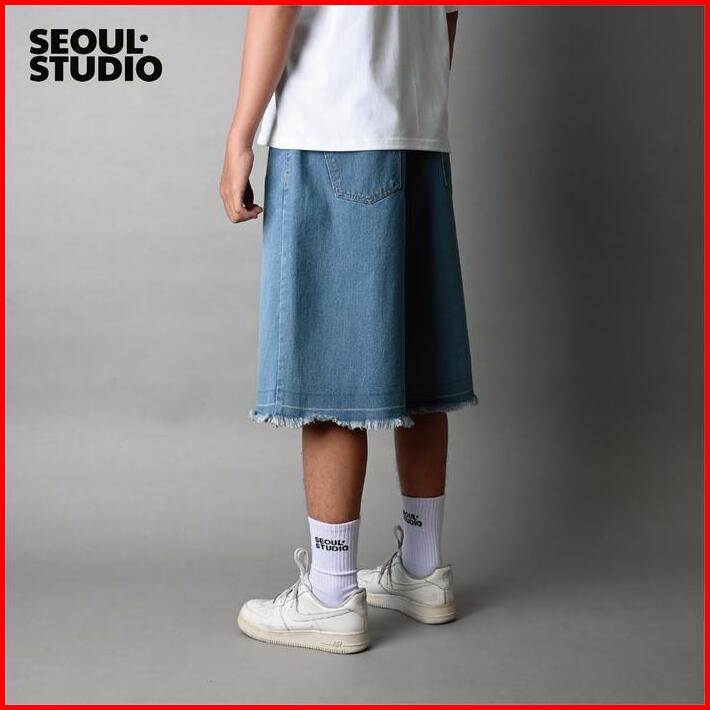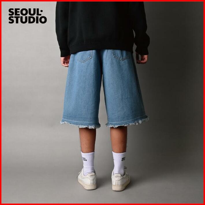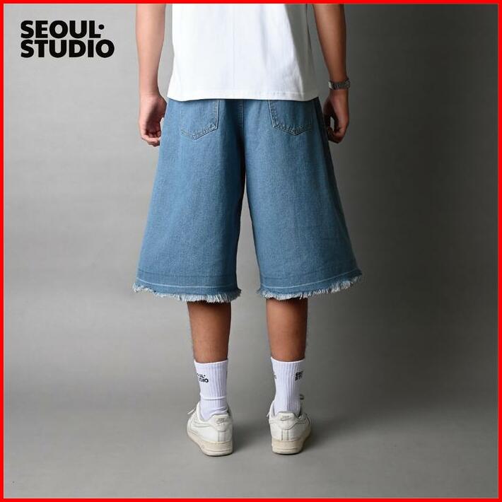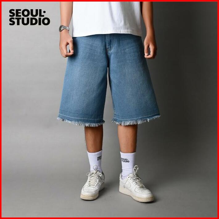 Seoulstudio Bermuda Pants Blue Jorts Denim Celana Jeans Short Pendek Baggy Gombrong Pria Cowok Cewek Perempuan Skena Fit