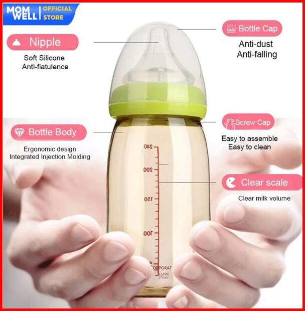Momwell Bps01 Gen 2 160ml 240ml Botol Susu Ppsu Wide Neck Ppsu Botol Susu Bayi Soft Touch Nipple