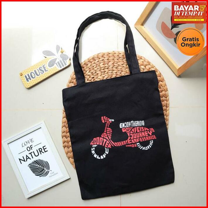 Totebag Kanvas Resleting Spnb Kaligrafi Motif Vespa