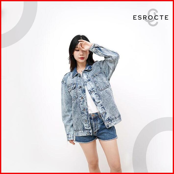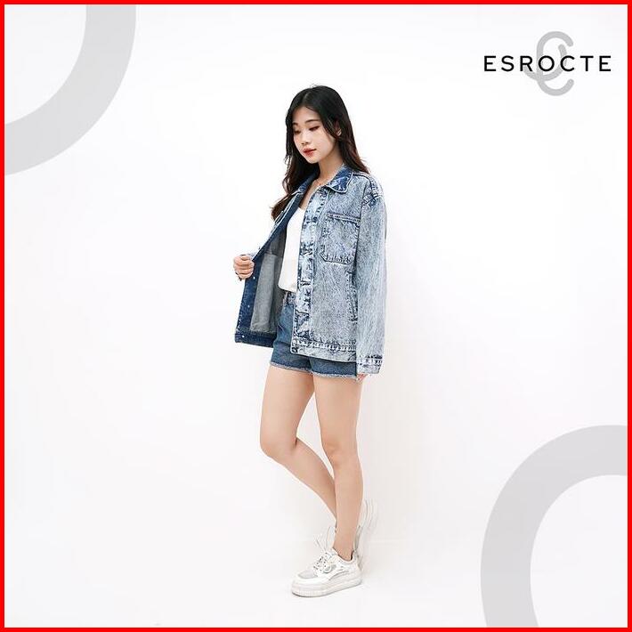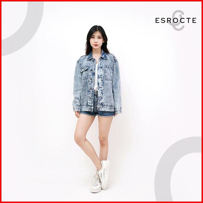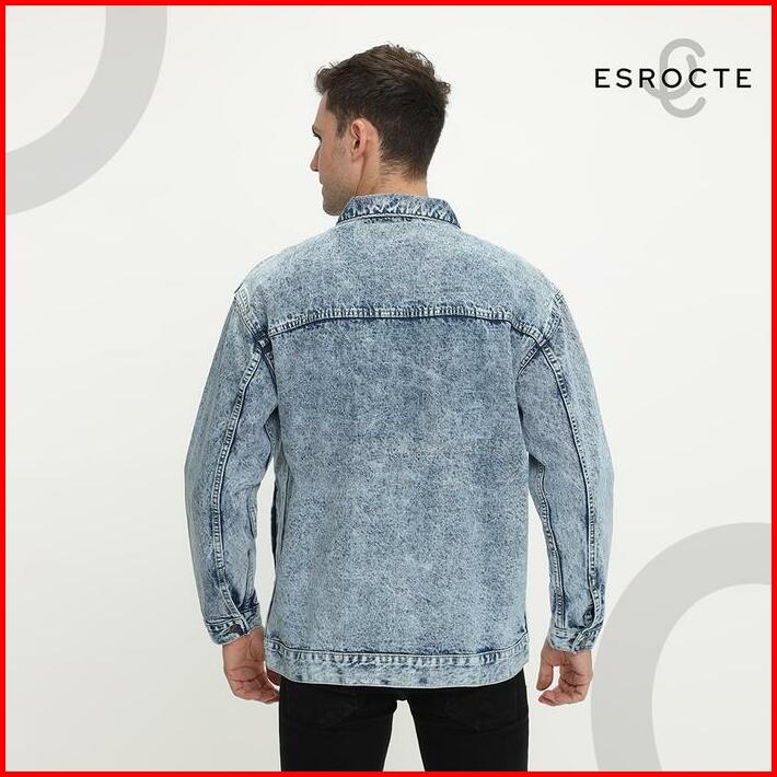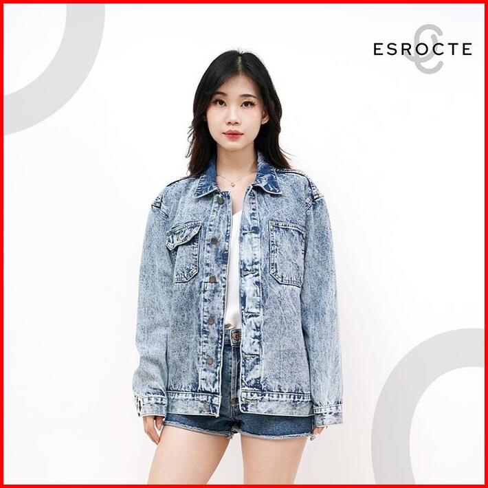 Esrocte Jaket Denim Jeans Unisex Oversize Lengan Panjang Pt7