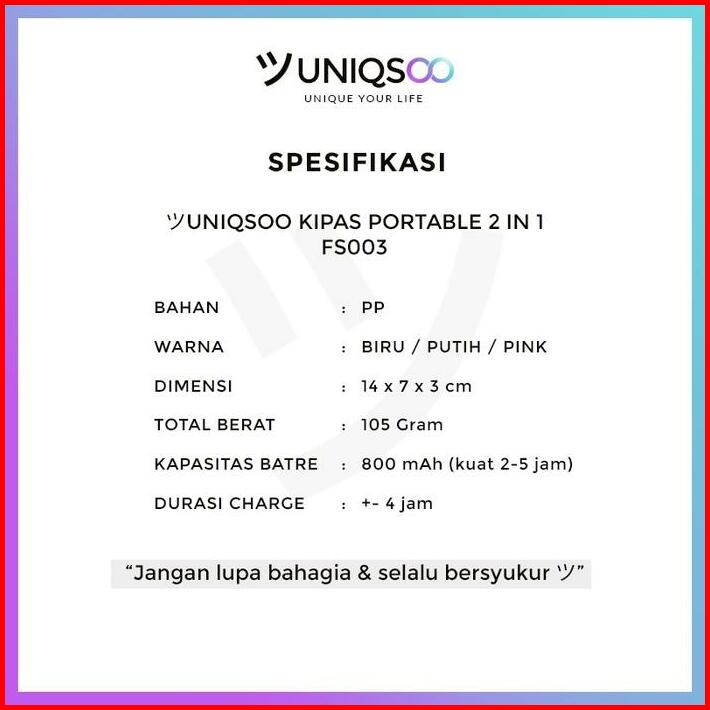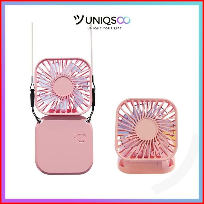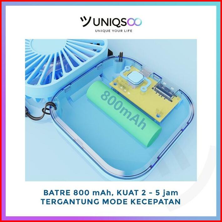 Uniqsoo Kipas Angin Mini Portable Model Gantung Leher 3-speed Angin Kencang Kipas 2in1 Karakter Mini Fan Mirror Usb Fs00