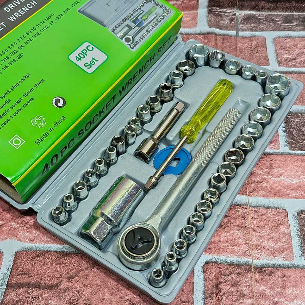 TEKIRO Kunci T 4pcs 8-10-12-14mmn +Shock Sock Set 40 Pcs + Kunci L Set 9 Pcs