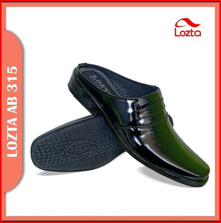 Pantofel Kulit Selop Bustong Lozta 315 Premium Terlaris Shoes Pria Hitam Sendal