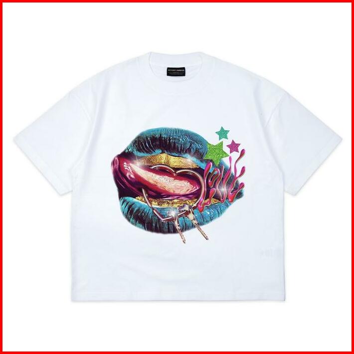 Accentambios Boxy Oversized Tshirt Rainbow Lips White Unisex