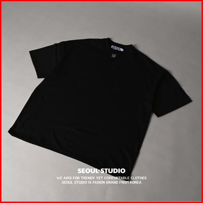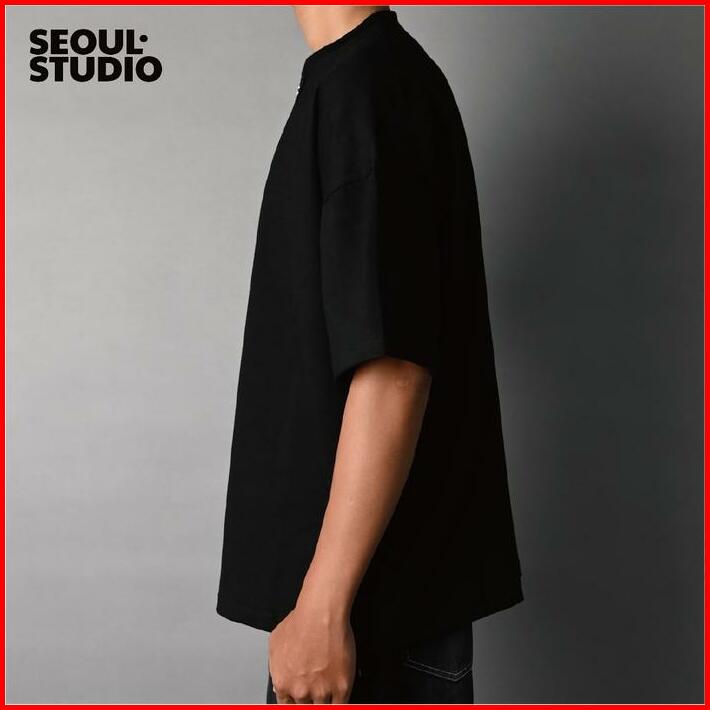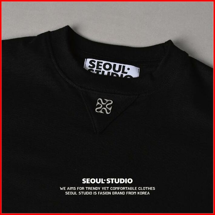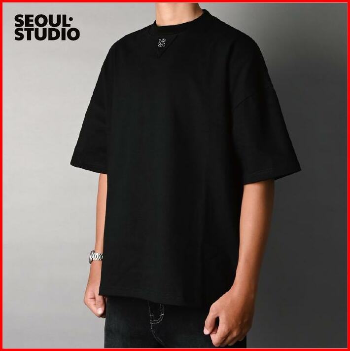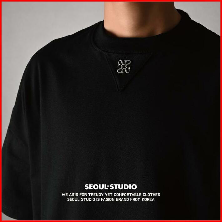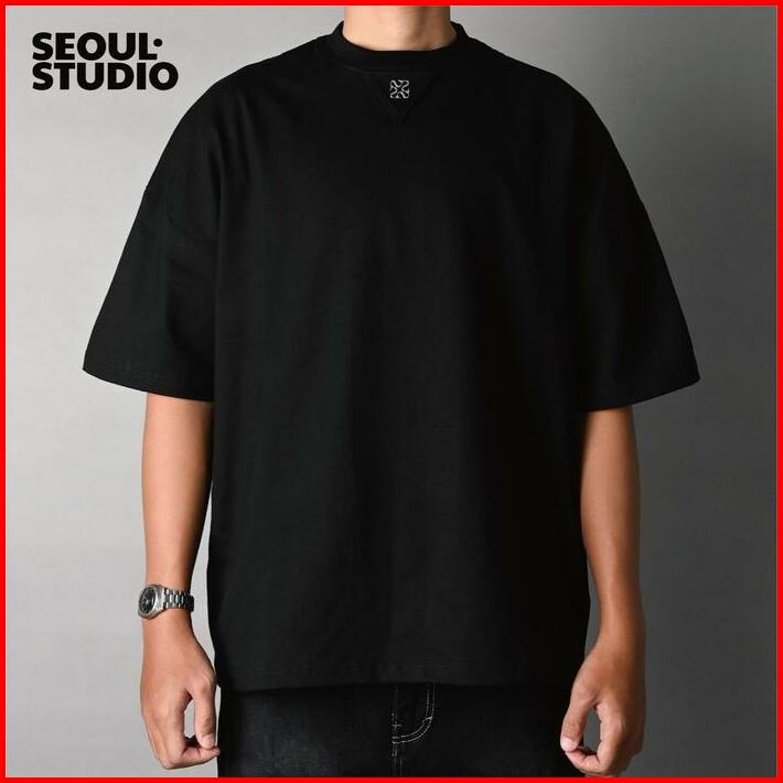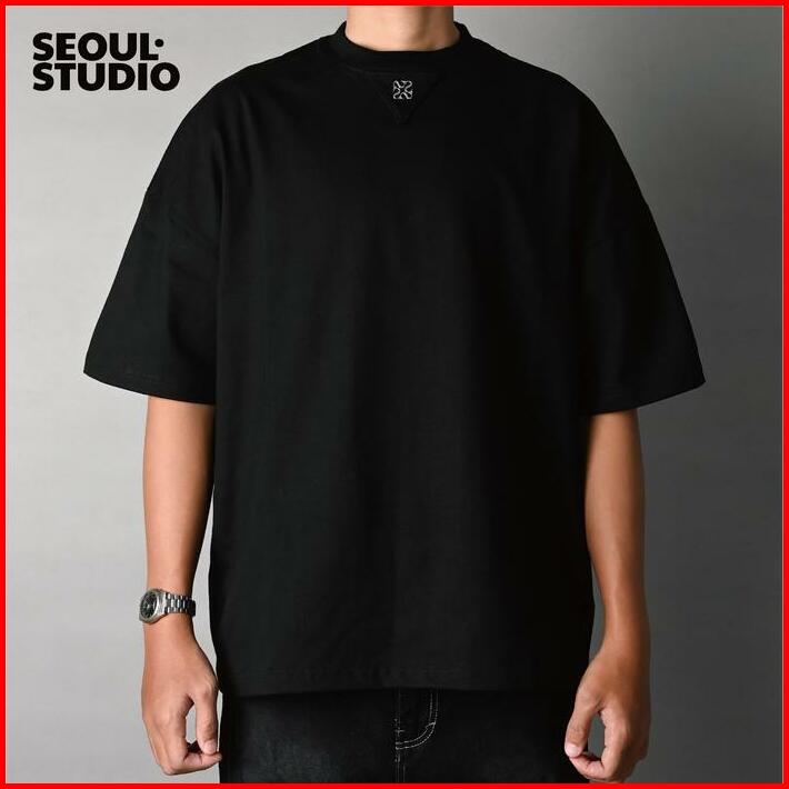 Seoulstudio Metal Symbol Oversized T Shirts Black 16s Kaos Baju Pria Cowok Tebal Combed Keren Katun Atasan Distro Polos