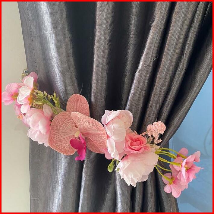 Tali Hordeng Bunga Pengikat Hordeng Aesthetic Perekat Hordeng Cantik Pink Putih Ungu