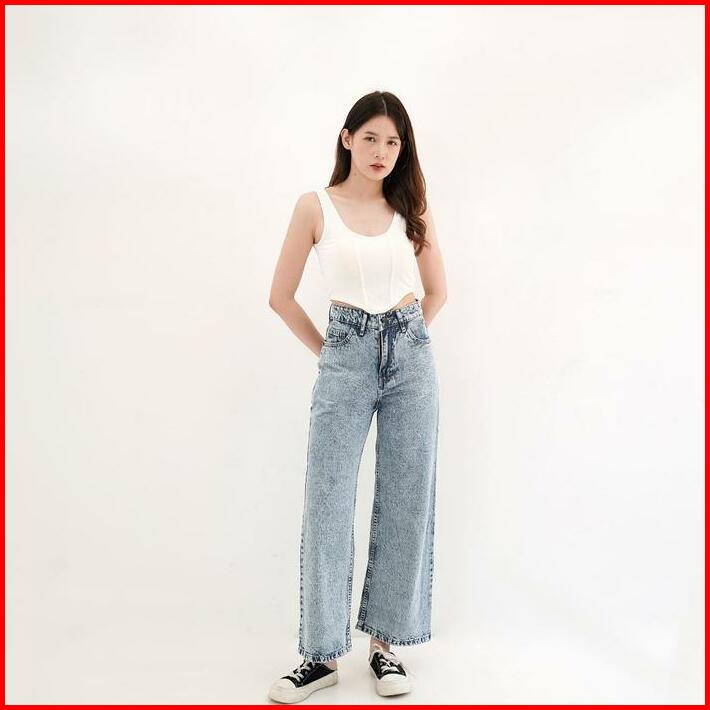 Esrocte Celana Kulot High Waist Jeans Wanita P01