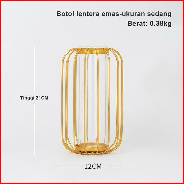 Optivia Penjualan Panas Vas Ins Gaya Lentera Besi Berbentuk Lentera Berbentuk Vas Hidroponik Cahaya Lampu Meja Vas Kaca